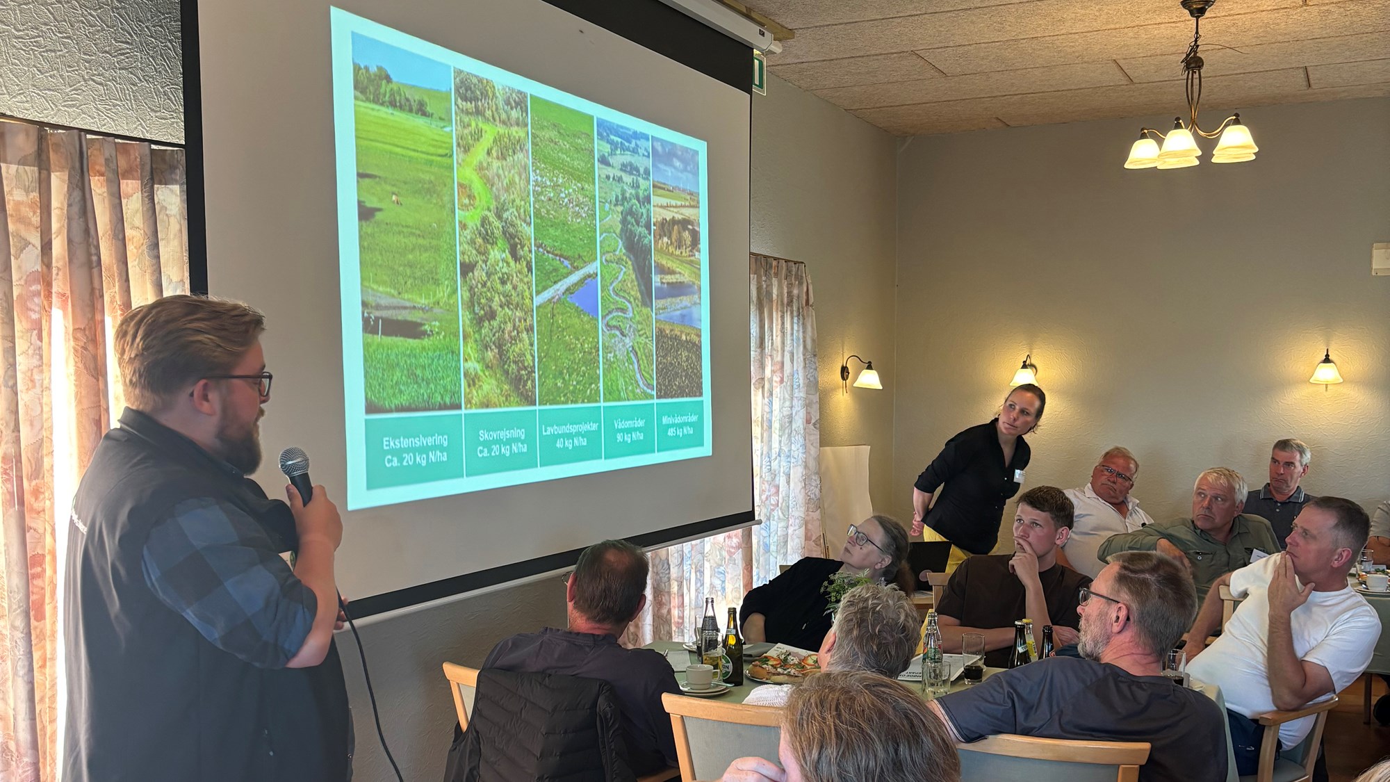 På programmet var indlæg fra både Jammerbugt Kommune, Agilix og Styrelsen for Grøn Arealomlægning og Vandmiljø (Jordfordelingskontoret). Efter runden med oplæg var der konkrete drøftelser over matrikelkort rundt om ved caféborde.